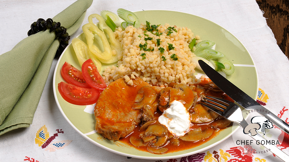 Pork steak in sweet paprika with mushrooms